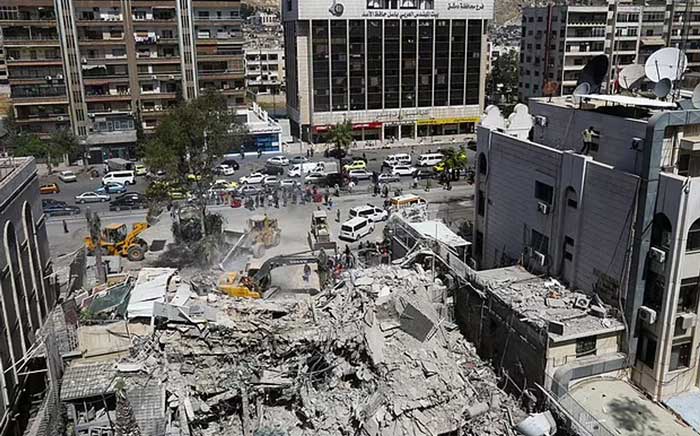 The strike levelled a five-storey building adjacent to the Iranian embassy in Damascus.